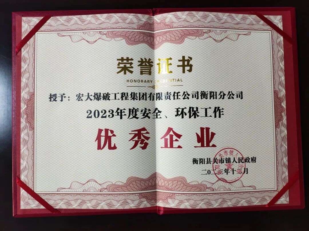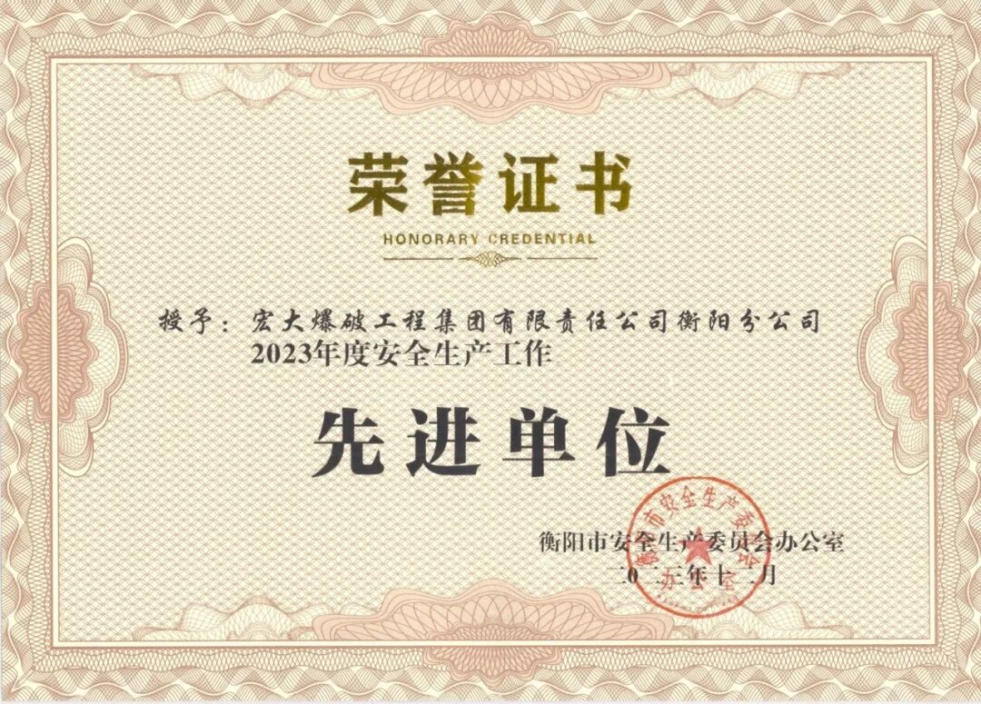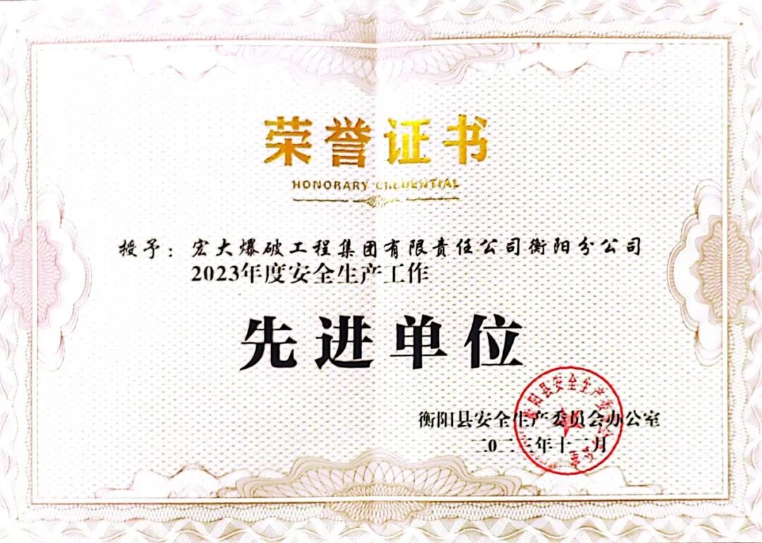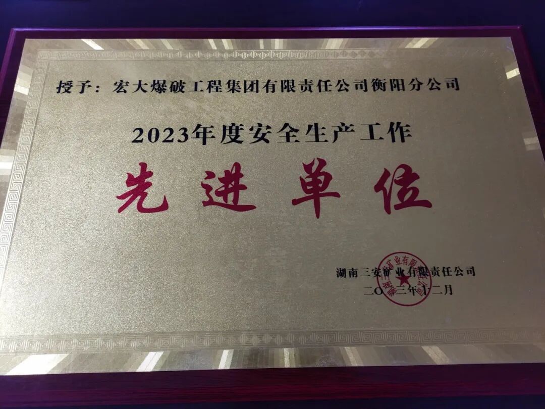 1月上旬,衡陽(yáng)分公司獲得衡陽(yáng)市2023年度安全生產(chǎn)工作先進(jìn)單位,衡陽(yáng)縣安全生產(chǎn)先進(jìn)單位,衡陽(yáng)縣關(guān)市鎮(zhèn)人民政府2023年度安全、環(huán)保優(yōu)秀企業(yè),業(yè)主三安礦業(yè)2023年度安全生產(chǎn)先進(jìn)單位等榮譽(yù)表彰。
