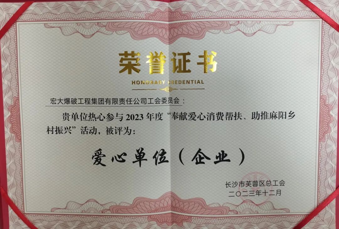 1月下旬,公司工會(huì)委員會(huì)被長(zhǎng)沙市芙蓉區(qū)總工會(huì)評(píng)為2023年度“愛(ài)心單位(企業(yè))”。