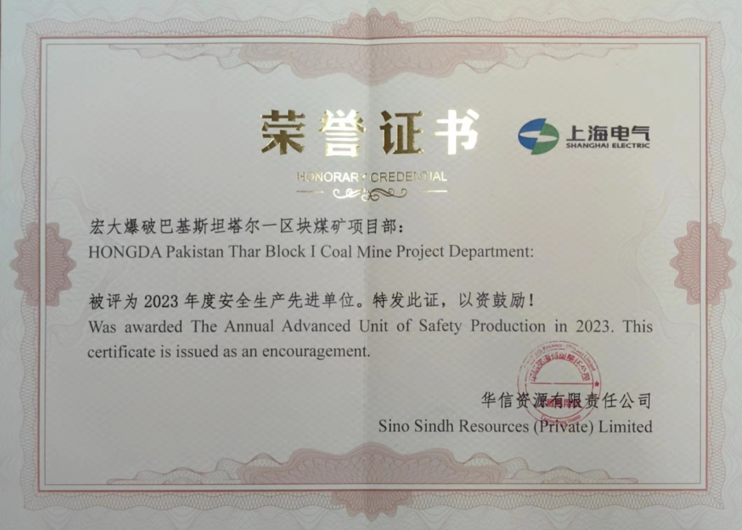 1月10日,巴基斯坦塔爾煤田I區(qū)塊項(xiàng)目部被業(yè)主評(píng)為“2023年度安全生產(chǎn)先進(jìn)單位”。