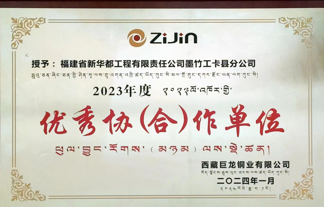 1月12日,西藏巨龍銅業(yè)有限公司授予墨竹工卡縣分公司2023年度“優(yōu)秀協(xié)(合)作單位”榮譽(yù)稱號(hào)。